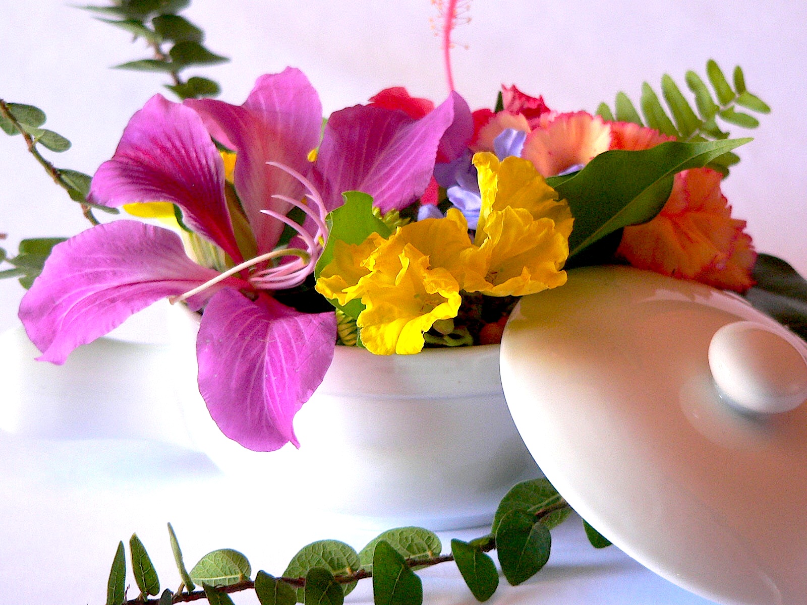 Tome su ejemplo y llene de flores su cocina, infinidad de ellas son comestibles. Descubra las de nuestro hábitat y adéntrese en un mundo de sutiles aromas; las de auyama, yuca, ajo, cayena o cacao pueblan nuestros campos y nos ofrecen un sinfín de posibilidades con las que sorprender al paladar. Tan solo tenga en cuenta que hallan sido cultivadas de forma natural (sin químicos), de utilizar únicamente los pétalos (los pistilos poseen un amargor nada agradable) y de abrir su mente a nuevas experiencias.