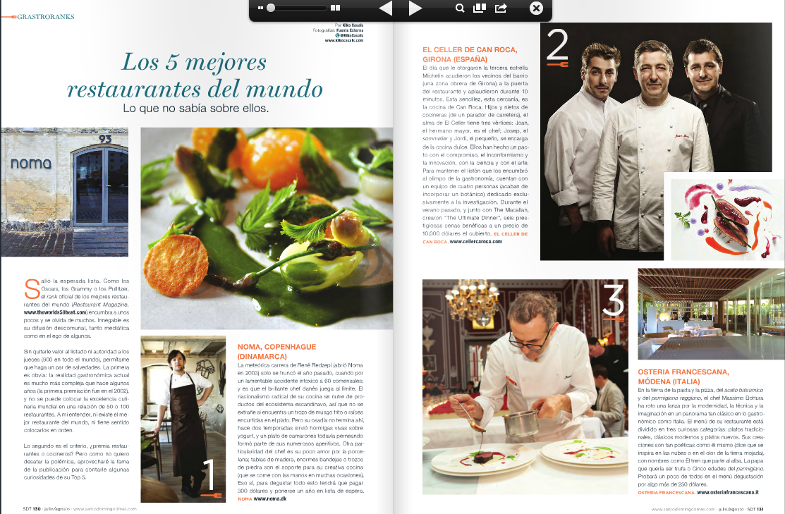 Para esta edición de SDT tomamos la famosa lista de Resturant (TheWorld´s 50 best restaurants) para escudriñar los secretos mejor guardados de los que encabezan la lista.