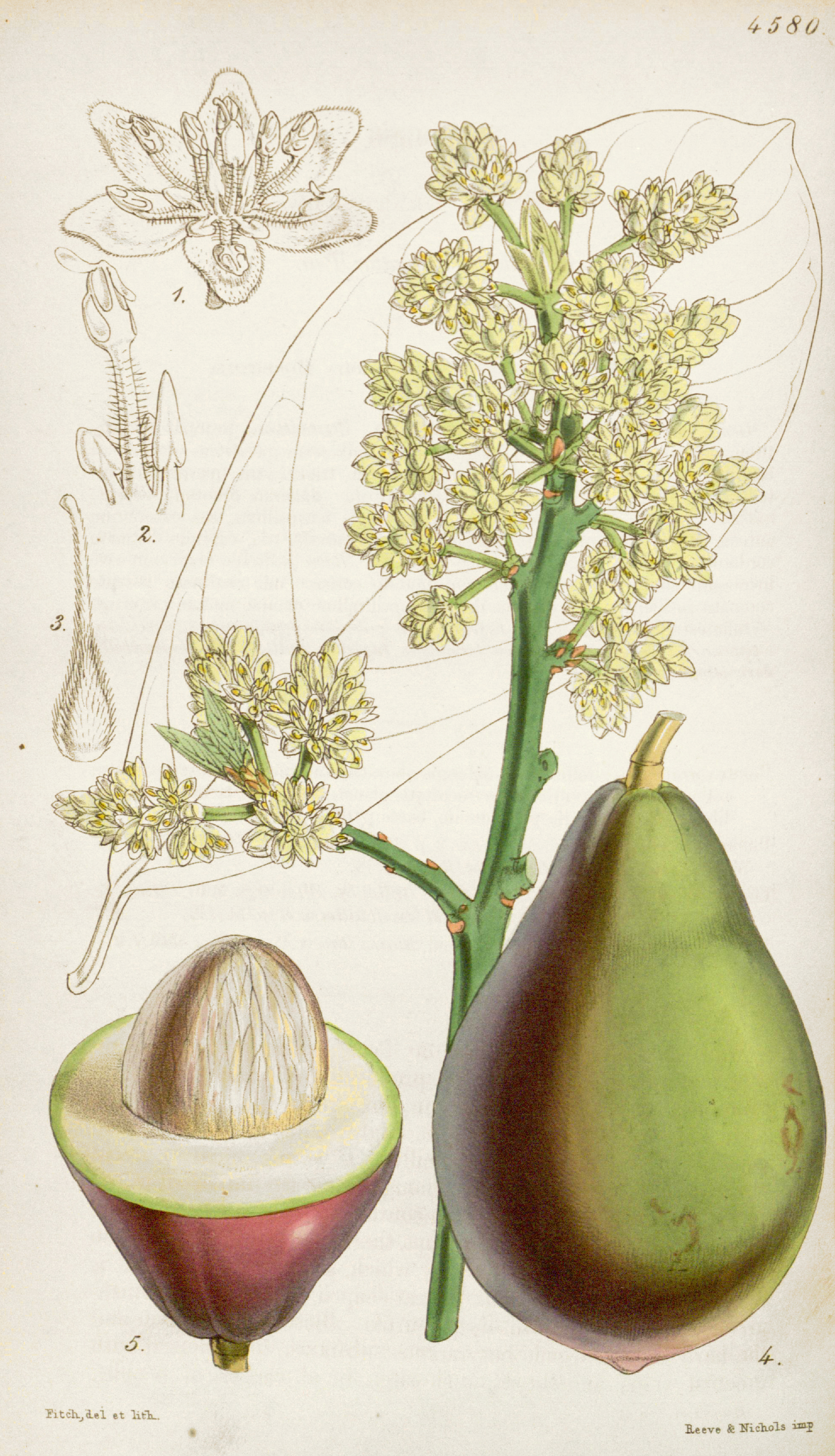 Dicen los entendidos que el aguacate fue de los primeros árboles con flores que pobló la tierra, que debió extinguirse hace millones de años. Si lo miramos bien, su dura corteza, la rugosidad de su piel y la excepcional cremosidad de su pulpa lo hacen único, y le otorgan una imagen arcaica que nos traslada a épocas prehistóricas. Pero es la enorme semilla de su interior la causante del anacronismo evolutivo que lo predestinaba a su exterminio.