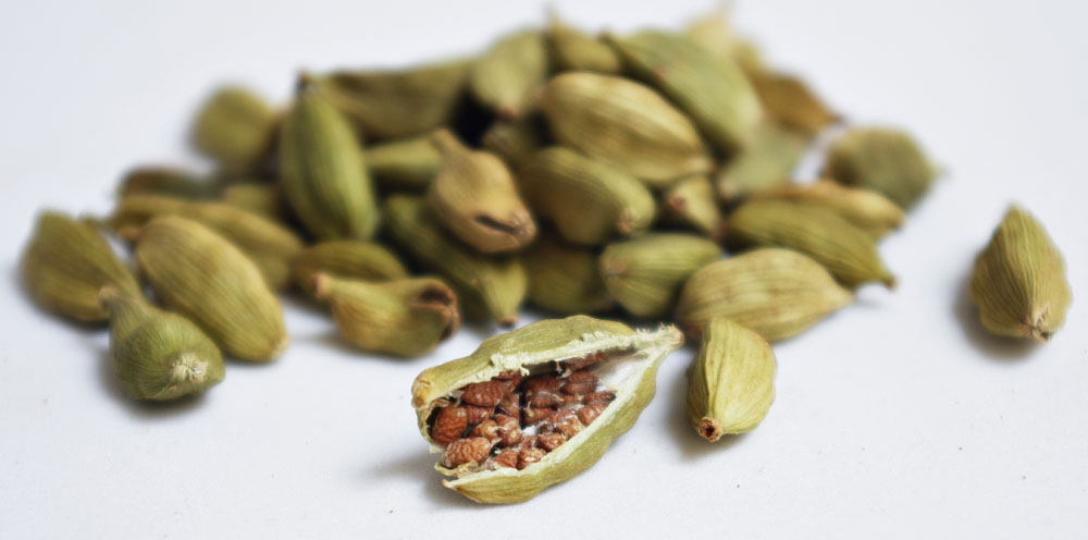 El Cardamomo es una especia originaria del sur de la India y Sri Lanka. Muy apreciada desde la antigüedad fue denominada con el evocador nombre de “grano del paraíso”. Esta semilla intensamente aromática, cálida, de sabor algo cítrico y dulce se encuentra en el interior de una pequeña vaina que debe molerse justo antes de su uso.