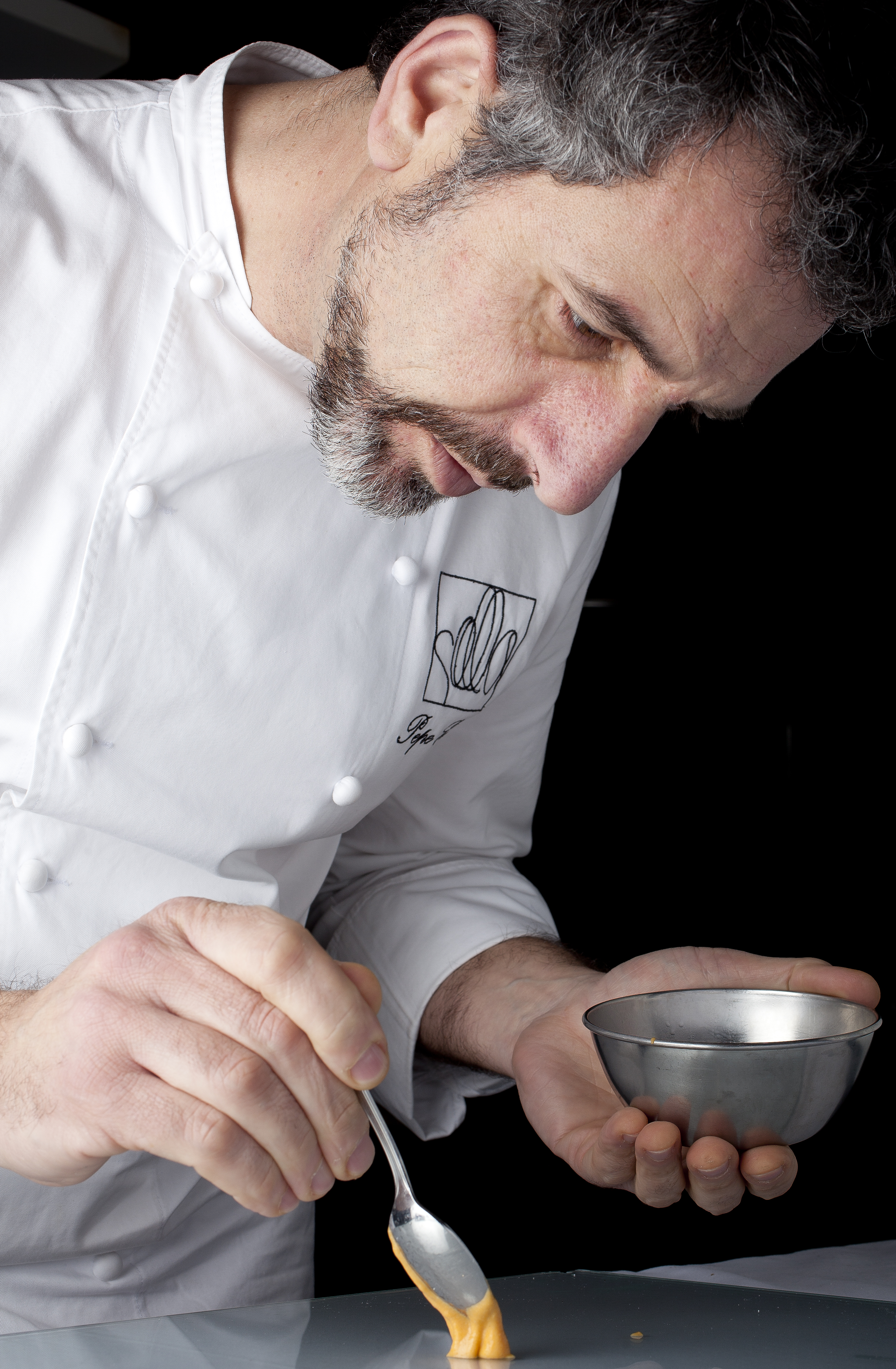 De mirada franca, sonrisa fácil y hablar pausado, así es Pepe Solla. Tras pocas palabras percibes su personalidad inquieta, intuición y sensibilidad, una madurez profesional a costa de trabajo y reflexión. Ese mismo carácter de equilibrio perfecto entre producto, técnica e inteligencia que transmite en sus platos.