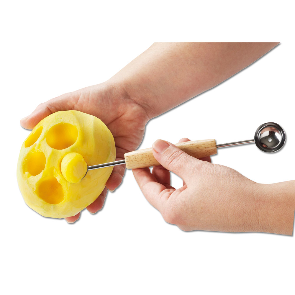 À la cuillère: tipo de corte especial para servicio realizado con un instrumento con forma de cuchara, de ahí su nombre. El resultado son unas esferas muy utilizadas para frutas como el melón o las manzanas que le dan una botina forma esférica.