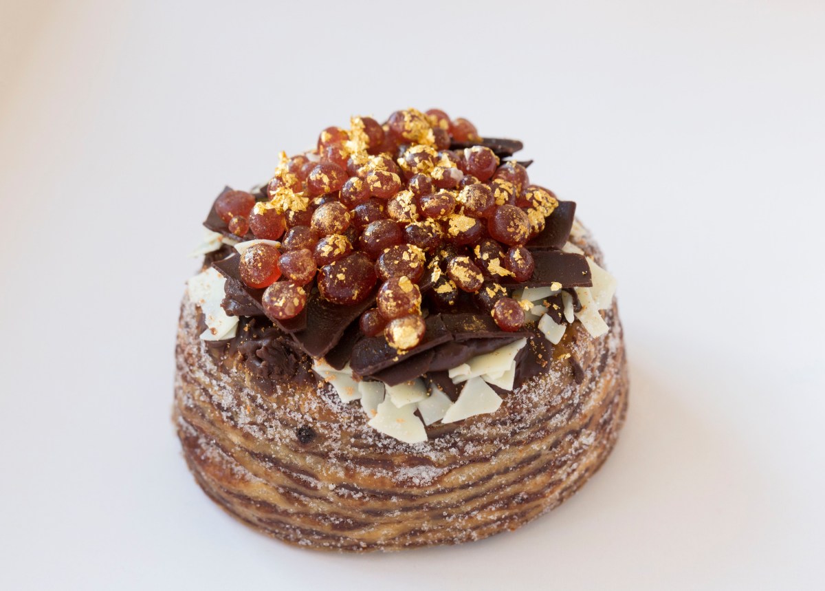 LONDON, ENGLAND – JULY 19: Dum Dum Donutterie and JUST EAT have created the world’s most expensive «Cronut», a doughnut hybrid for £1,500. The Luxury Zebra Cro includes Saffron Infused Butter Croissant Dough, Cristal Rosé Champagne Caviar, Gold Leaf, Tahitian Gold Vanilla Beans and rare Amedei Porcelana Chocolate. The Cro has been created to celebrate the launch of the Just Eat Food Fest taking place at Red Market, Shoreditch from 22 – 24 July and the Luxury Cro will be available to buy on request at the Food Fest and on Just-Eat.co.uk over the weekend. For more information about the Just Eat Food Fest, visit http://www.just-eat.co.uk/london/foodfest (Photo by John Phillips/Getty Images for JUST EAT)