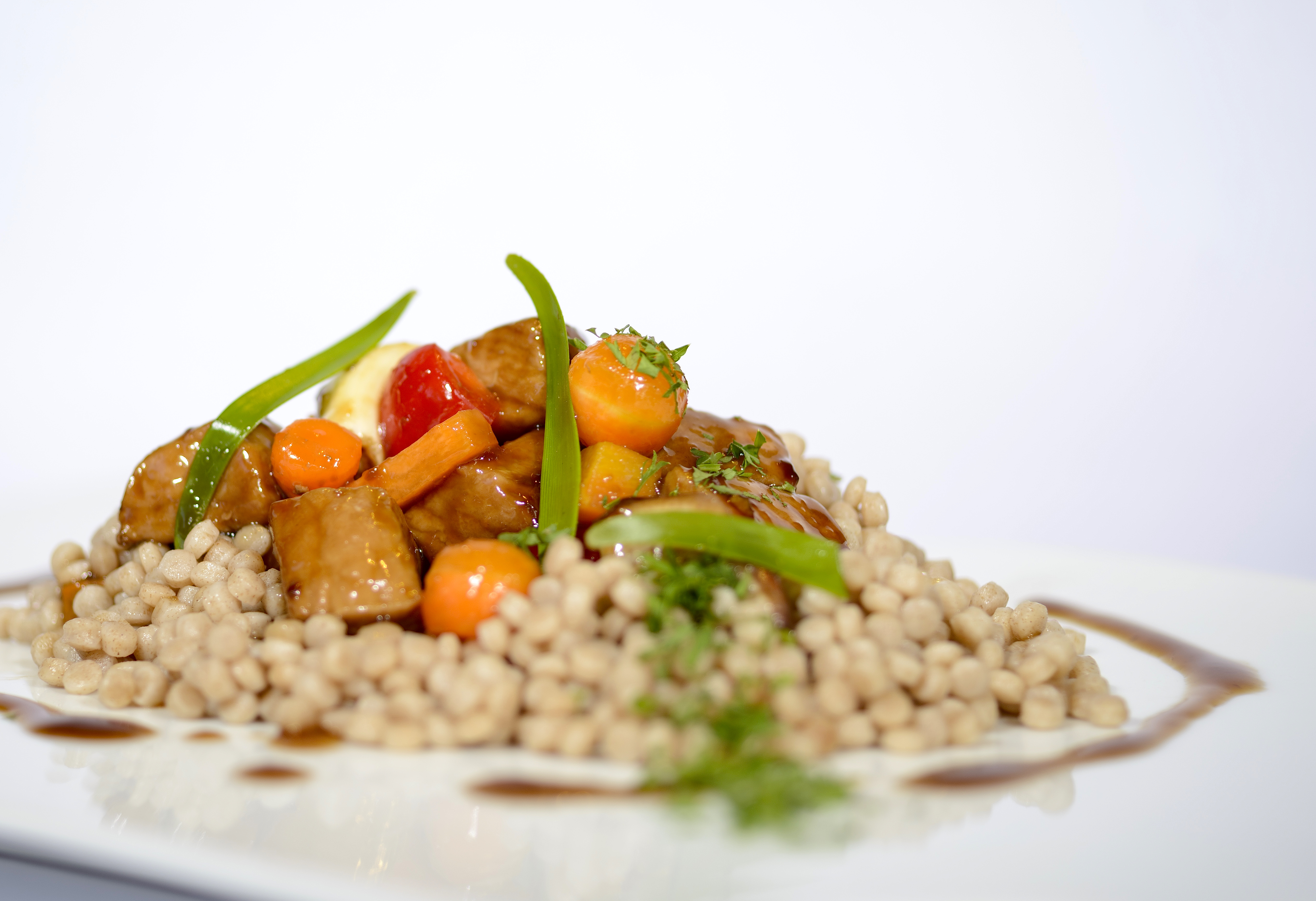 Para el cuscús: 1 ½ taza cuscús israelí, 2 tazas caldo vegetal, sal